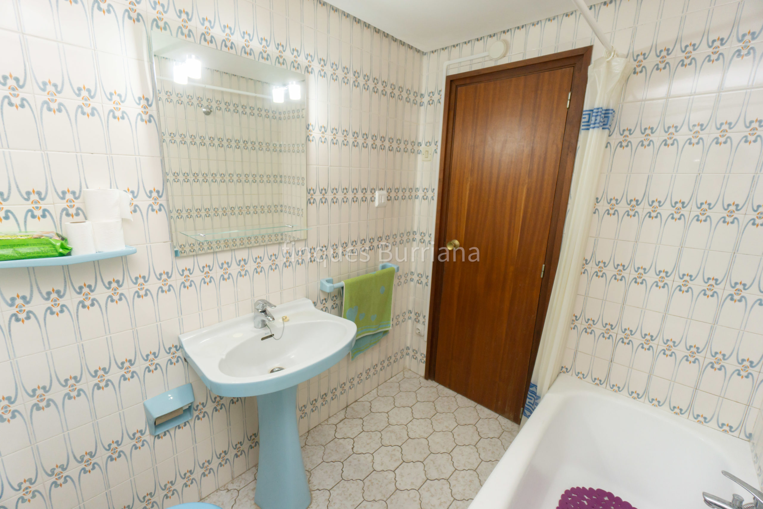 El baño completo cuenta con bañera, lavabo, inodoro y bidé, conservando su estilo original en perfecto estado de uso.