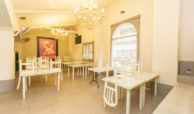 Amplio salón comedor con capacidad para numerosos comensales, decorado con estilo elegante y buena iluminación.