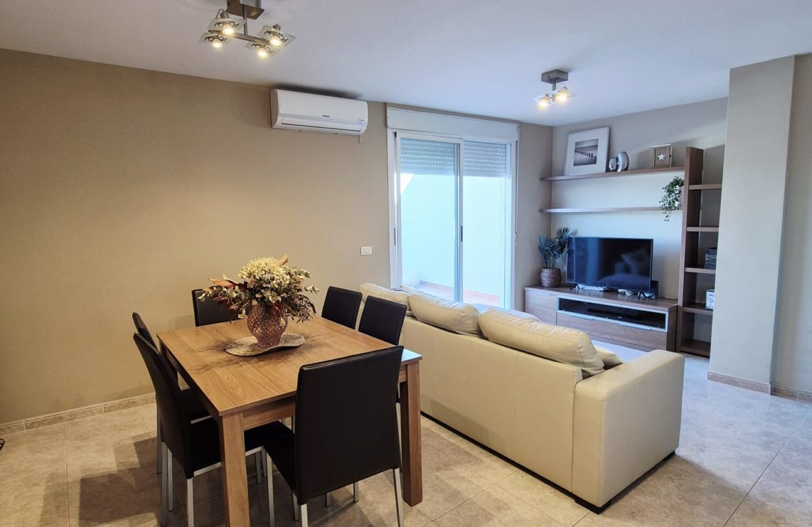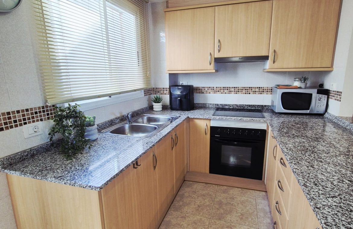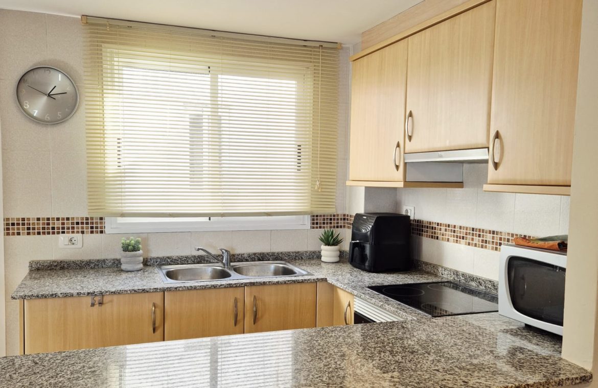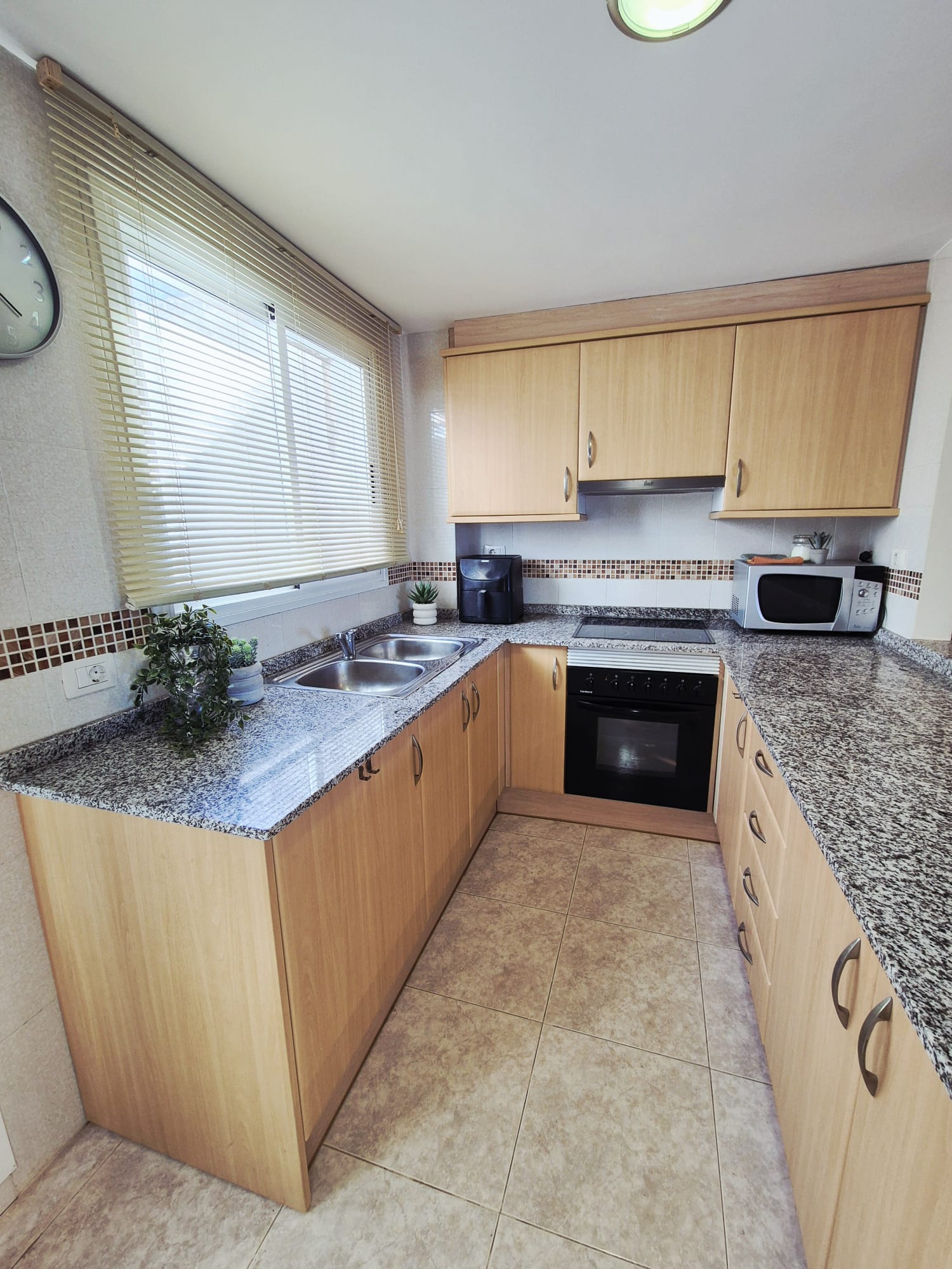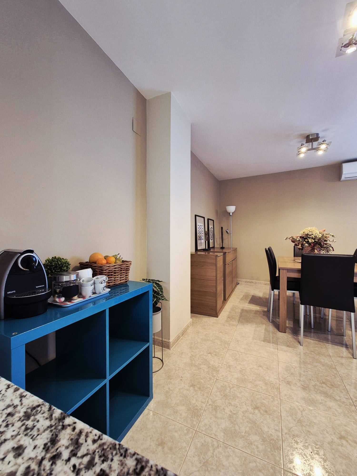 Dispone de una cocina abierta, totalmente integrada en el espacio, que conecta con el comedor-salón, creando una estancia amplia, moderna y muy acogedora. El salón está equipado con aire acondicionado, garantizando confort durante todo el año.