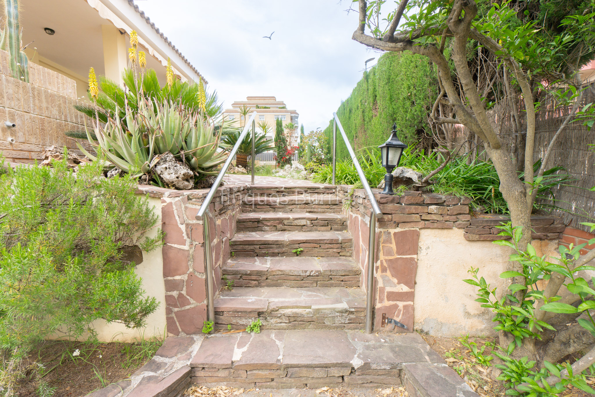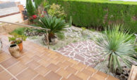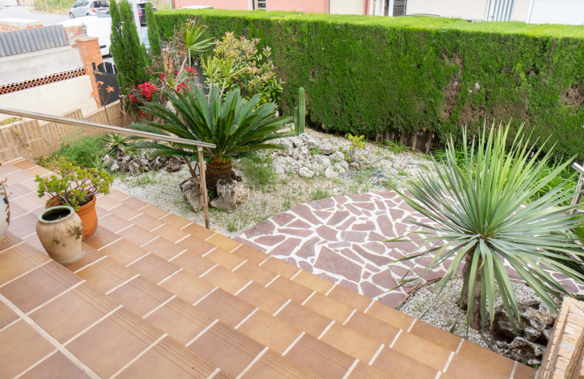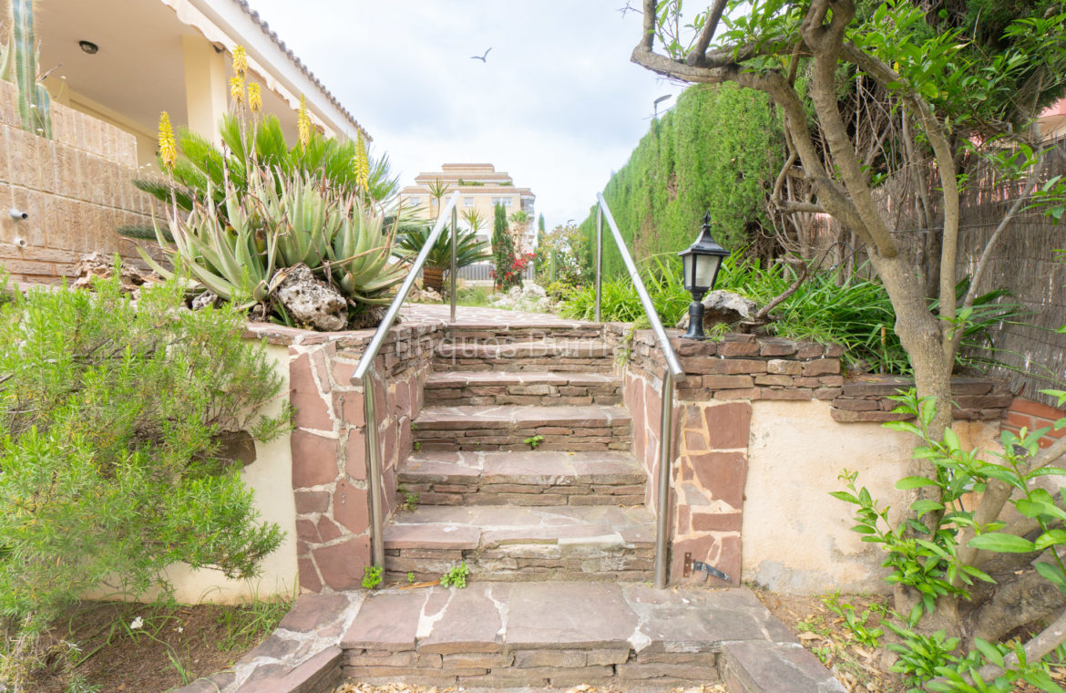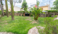 En el exterior, la vivienda está rodeada por un amplio jardín, ideal para disfrutar del clima mediterráneo.