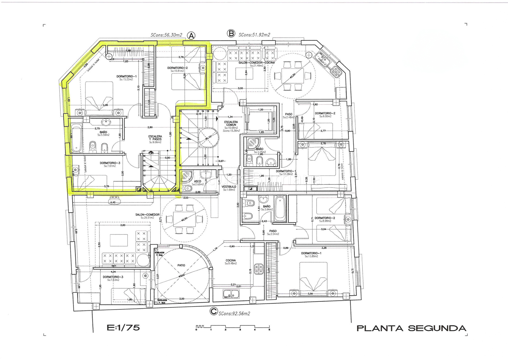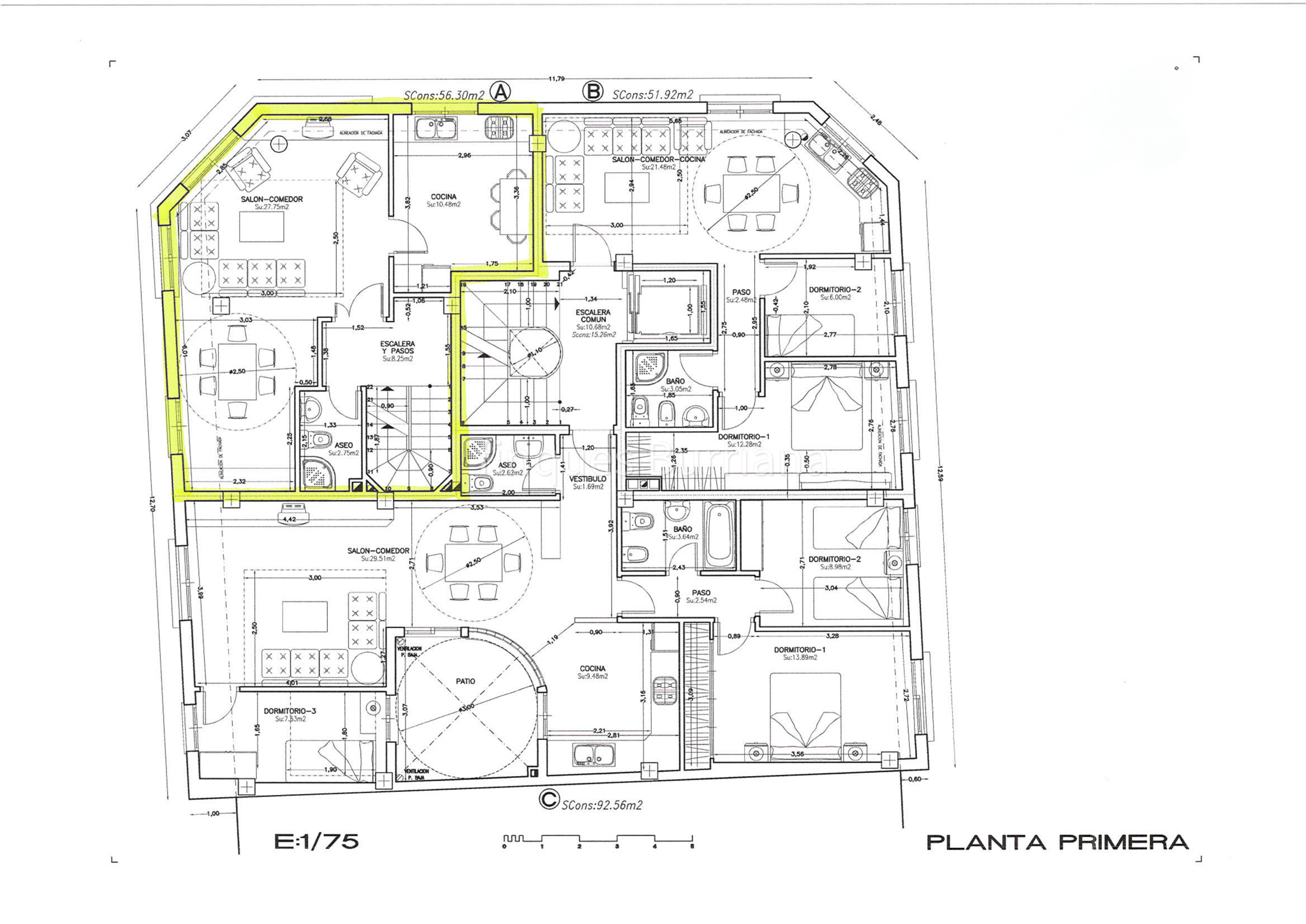 En cada planta (1ª y 2ª) se proyectó construir: