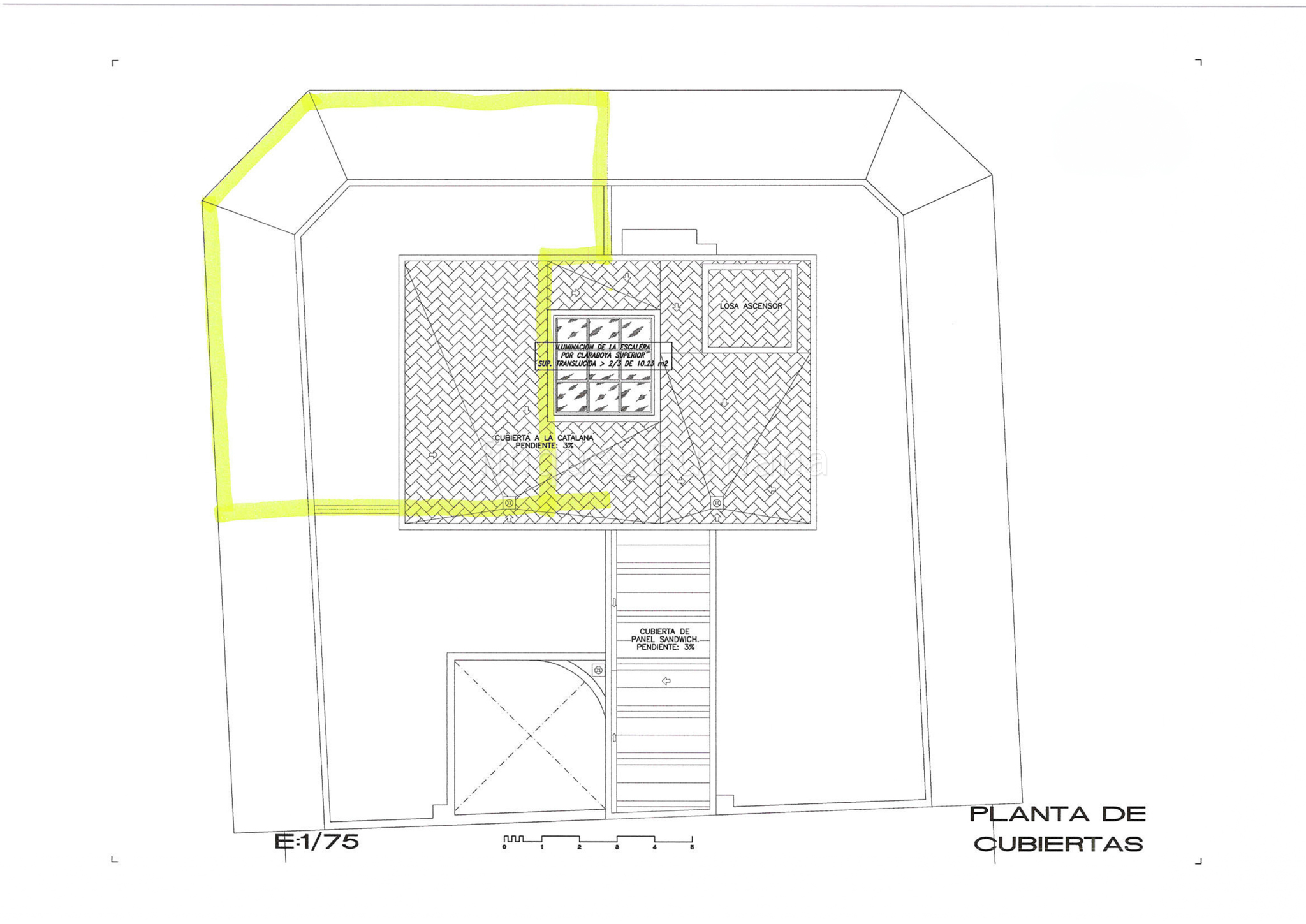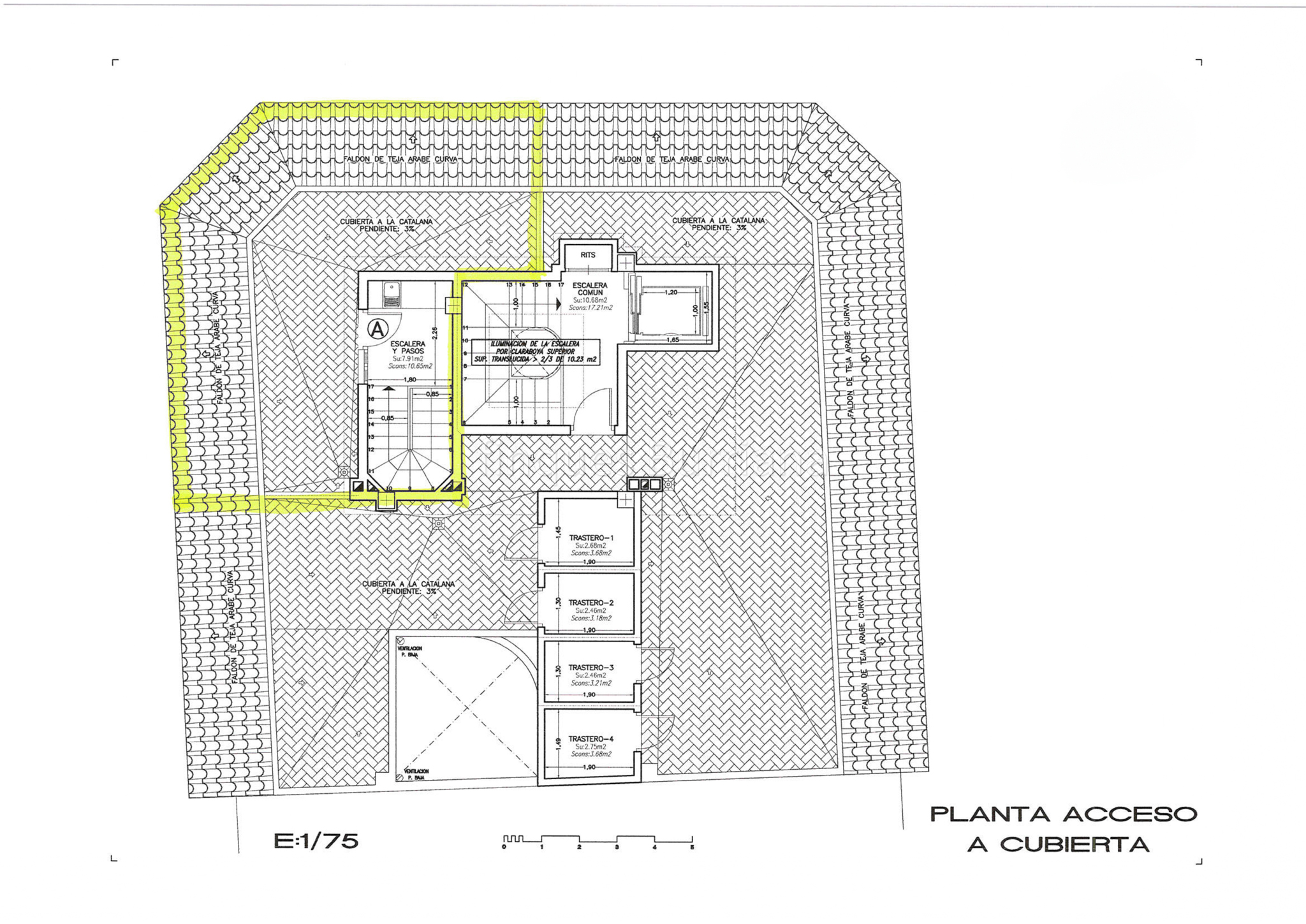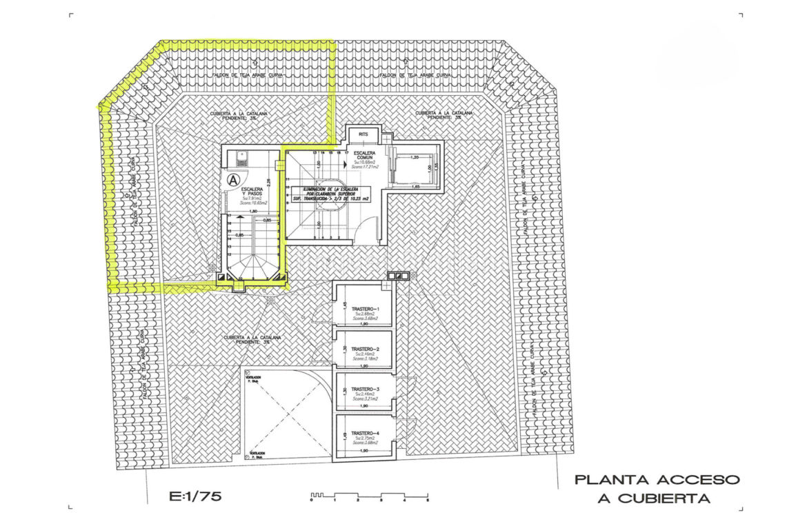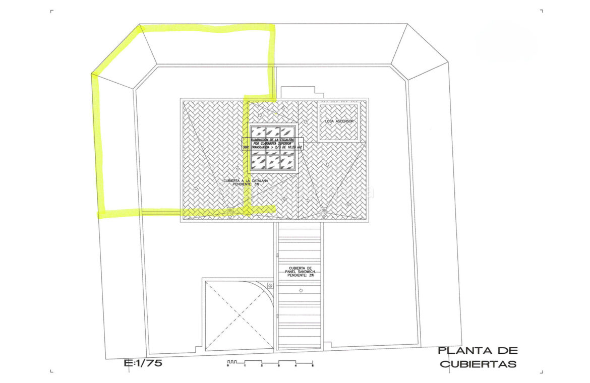 Planta de acceso a cubierta totalmente terminada, incluyendo instalación de bajantes de pluviales.