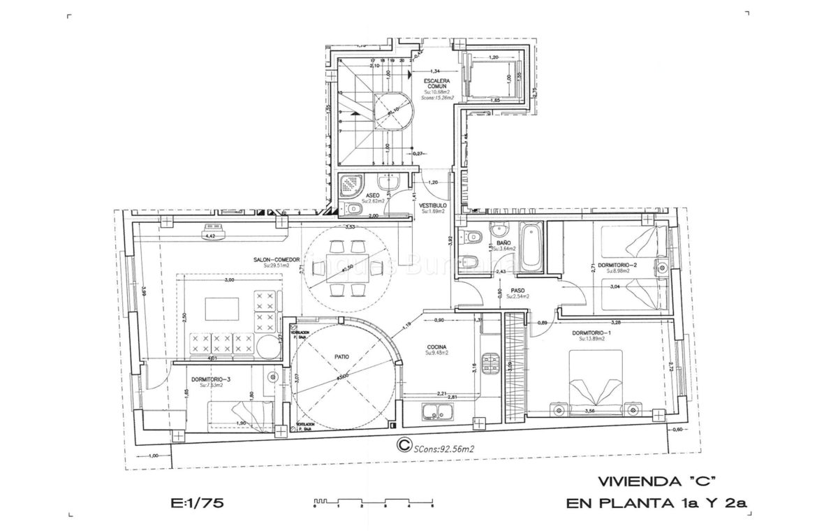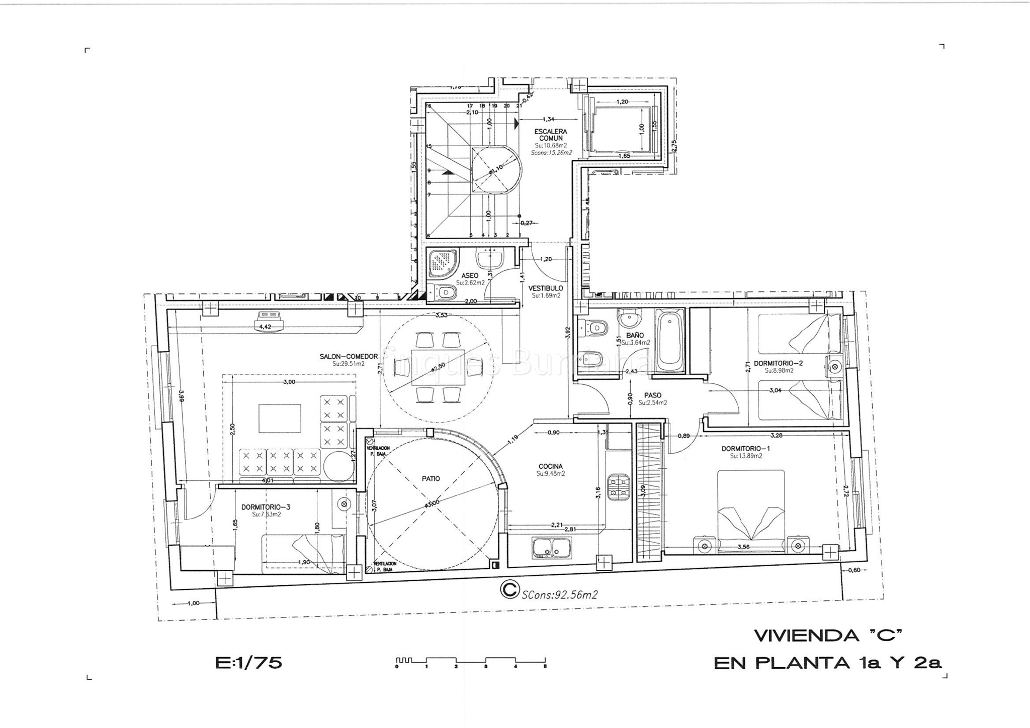 Una vivienda de 93 m² con 3 dormitorios.