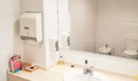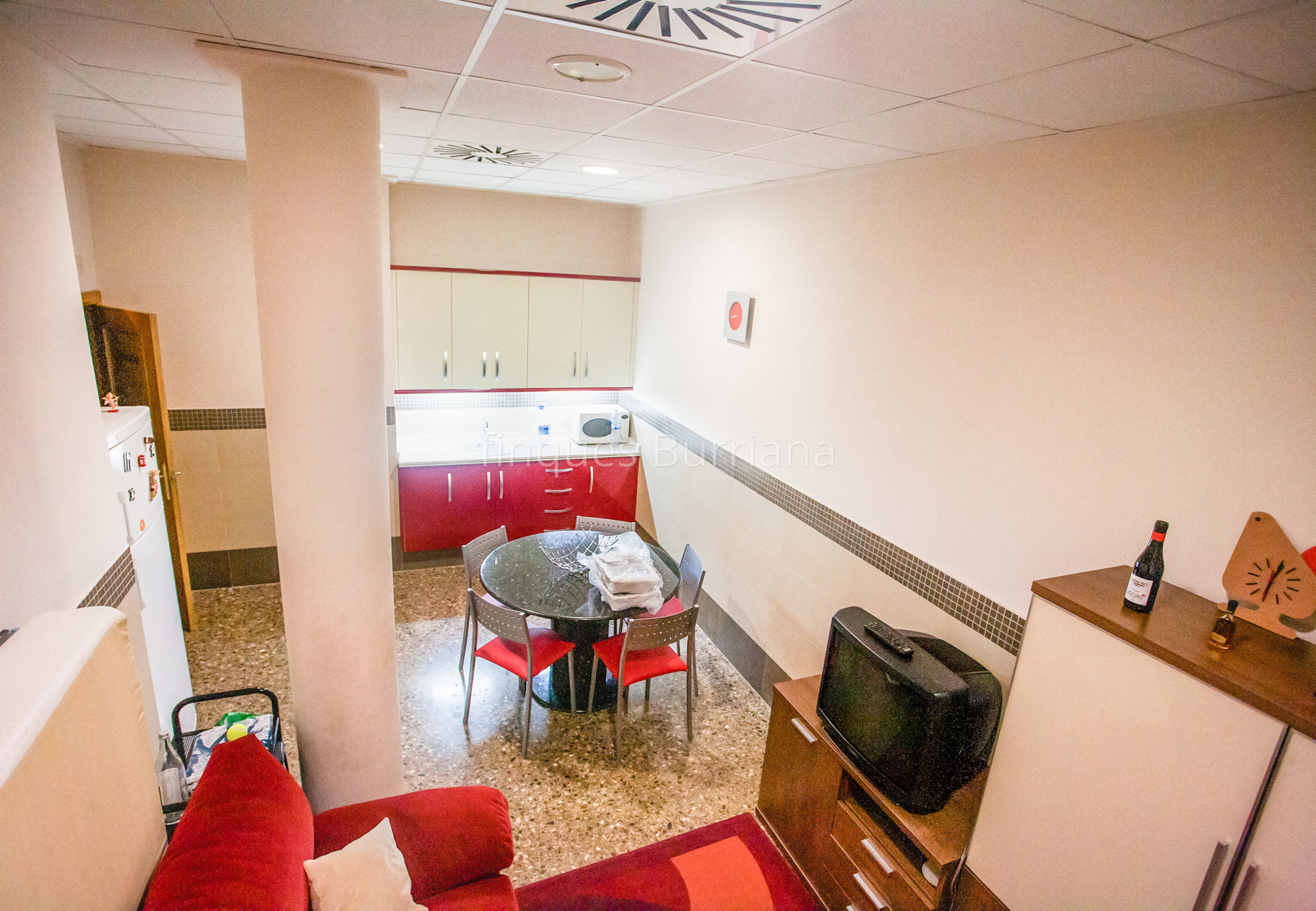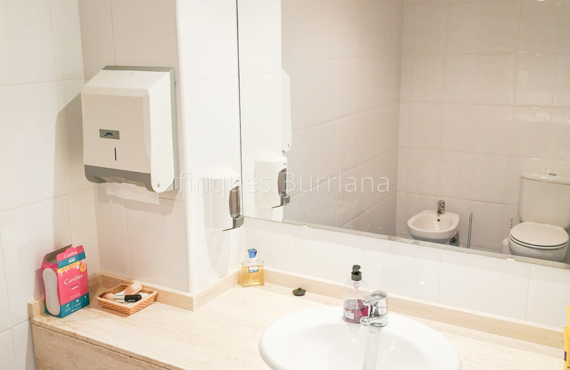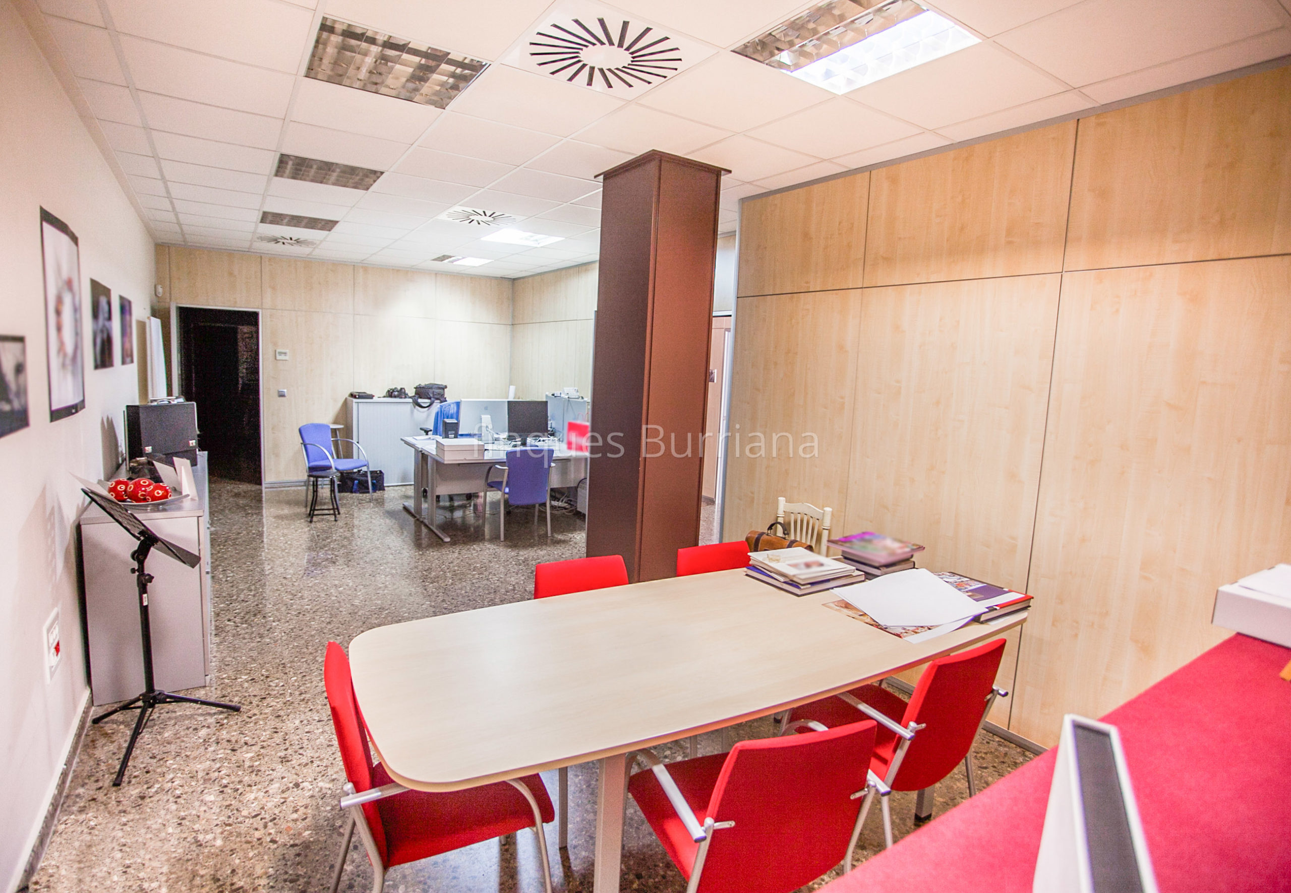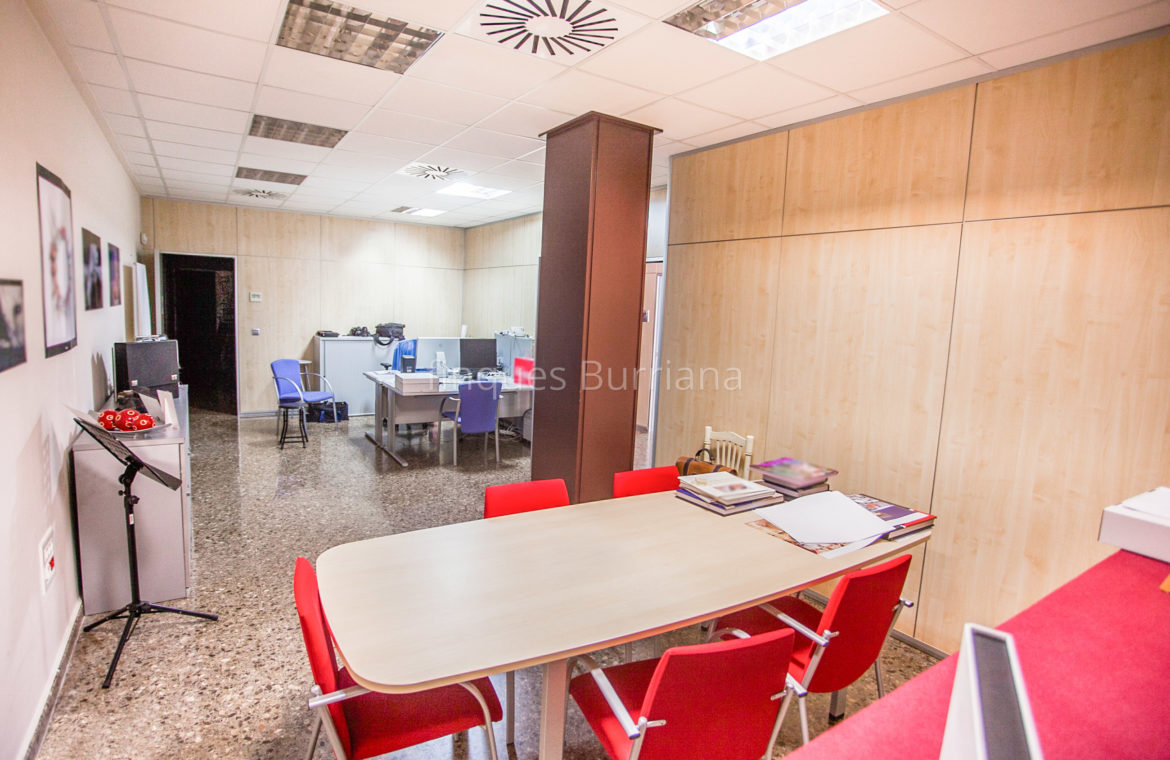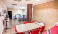 El local cuenta con una distribución funcional y completa: amplias instalaciones, varias oficinas, sala de reuniones, cocina equipada, dos aseos (uno de ellos adaptado para personas con movilidad reducida) y un almacén insonorizado. Todo el espacio está climatizado mediante sistema de aire acondicionado frío/calor, lo que garantiza confort durante todo el año.