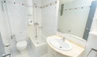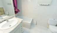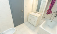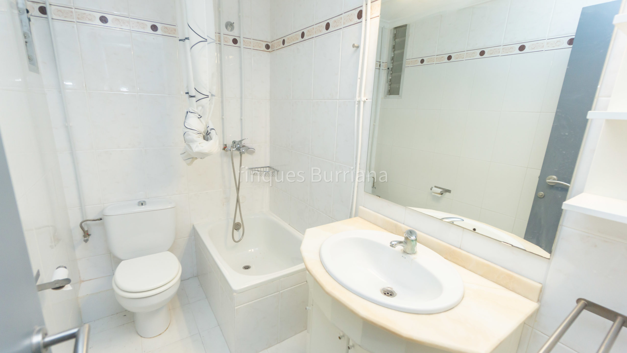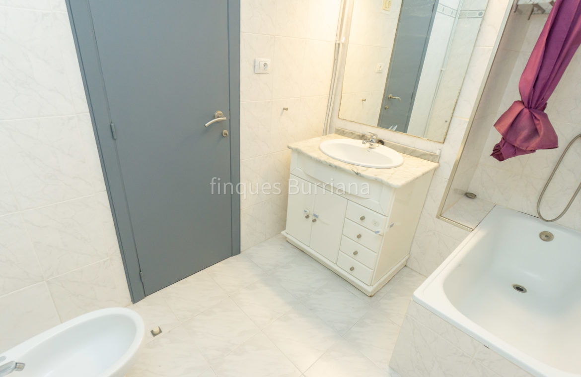 El piso cuenta con dos baños completos, ambos con bañera, uno de ellos con mueble de lavabo en mármol y espejo grande.