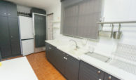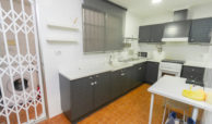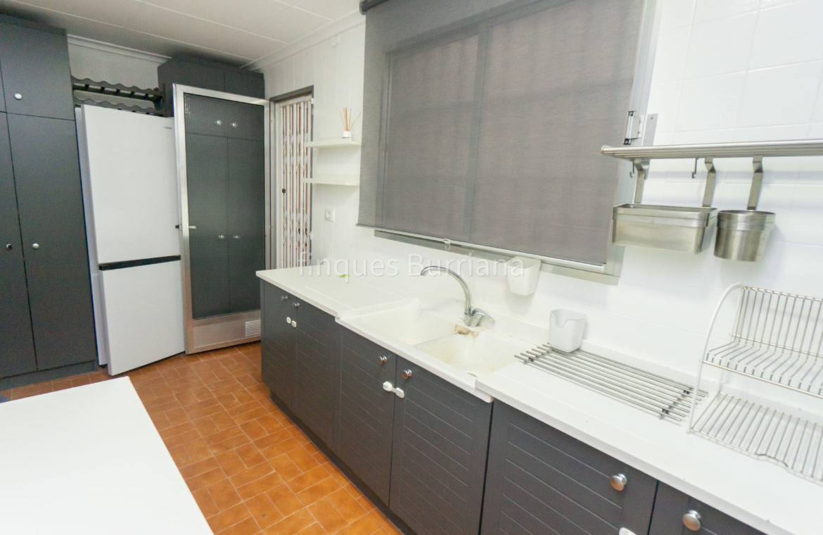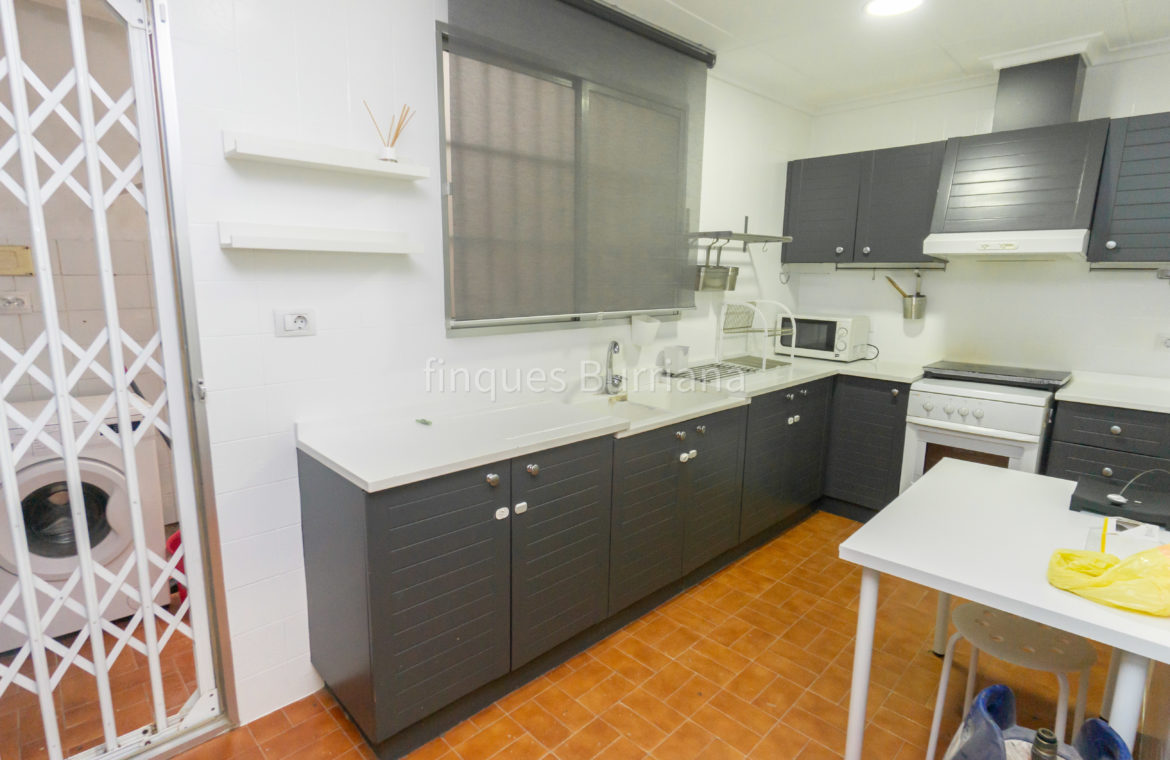 La cocina, completamente equipada, cuenta con gran capacidad de almacenaje, encimera doble y acceso directo a una galería o patio pisable, perfecta como zona de lavado o para tender. En esta zona se encuentra el lavadero con pila, lavadora y espacio auxiliar.