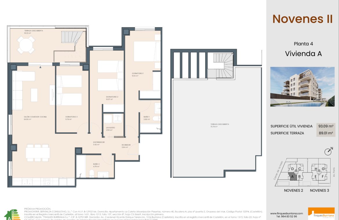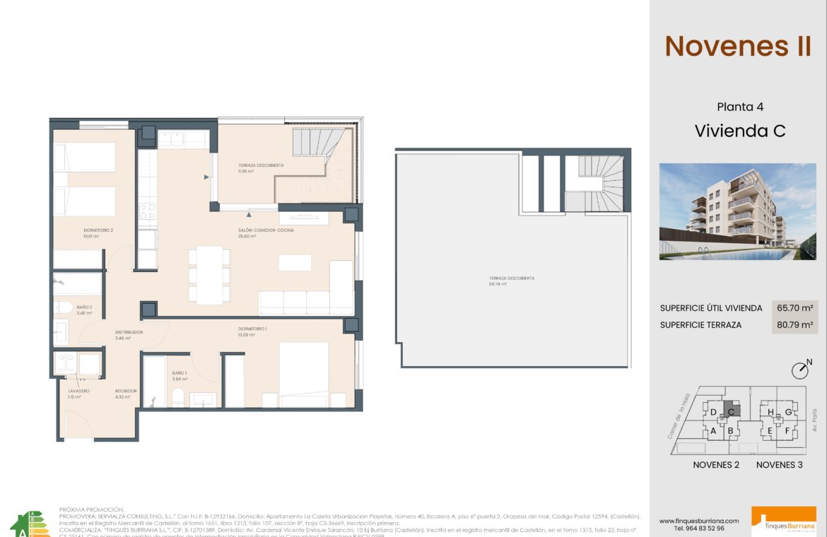 Residencial Novenes II y III se sitúa en uno de los entornos residenciales más modernos y tranquilos de Burriana, dentro de la zona Novenes de Calatrava.